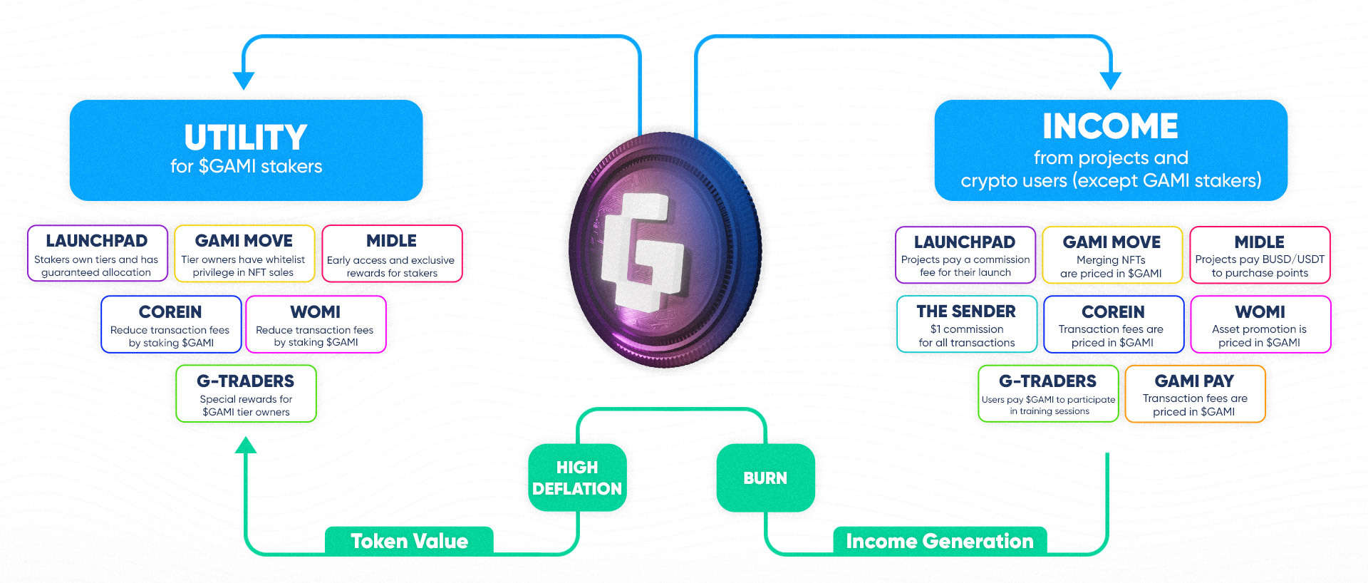 GAMI World creates its own ecosystem with various ventures (a.k.a. products) where $GAMI token is the sole utility token of all ventures.